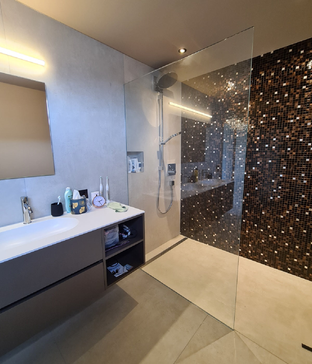 Ob rahmenlose Duschtrennwand, moderne Küchenrückwand aus Glas oder passgenauer Spiegel – wir bieten individuelle Glaslösungen, die Funktionalität und Design vereinen. In Kombination mit unseren Boden- und Wandplatten entstehen hochwertige und stilvolle Raumkonzepte. Auf Mass gefertigt und professionell montiert für langlebige Qualität bis ins Detail. Jede Glaslösung beginnt mit einer guten Planung. Ob Duschtrennwand, Küchenrückwand oder Spiegel, wir beraten Sie persönlich, zeigen Ihnen passende Varianten und erstellen Ihnen ein massgeschneidertes Angebot. Jetzt einen Beratungstermin vereinbaren – wir freuen uns auf Ihre Anfrage.
